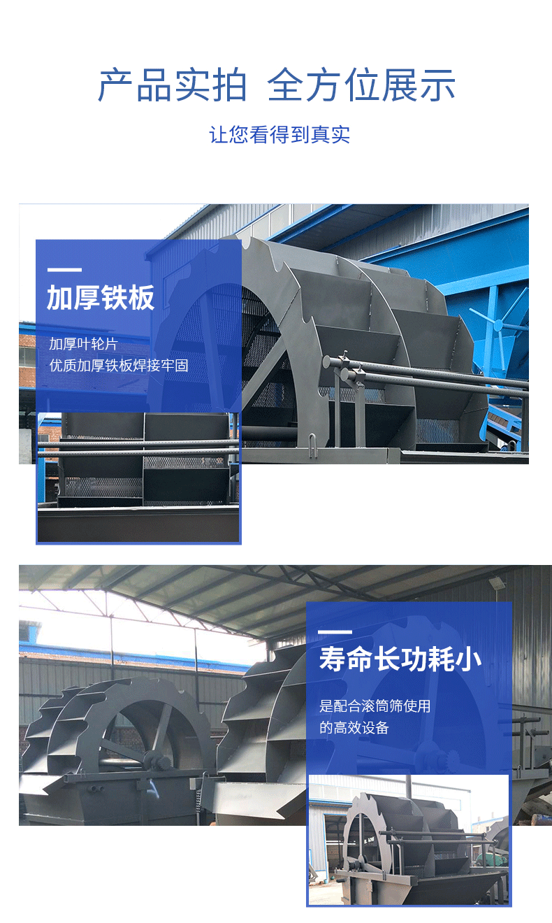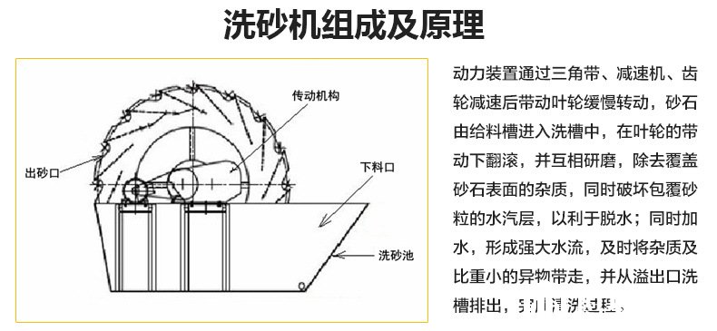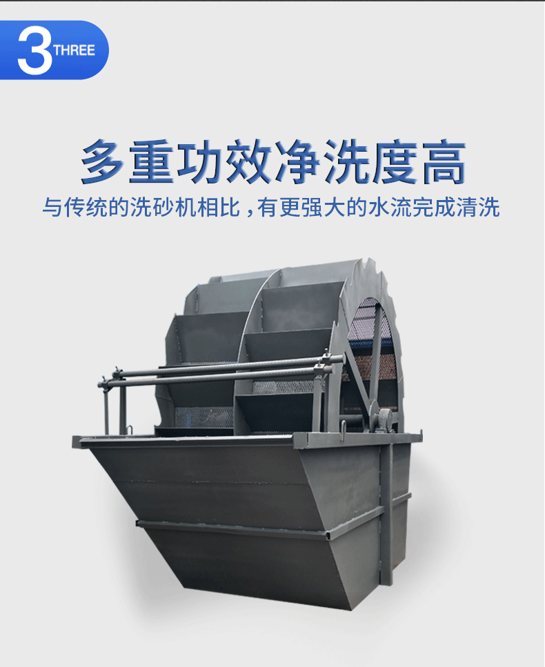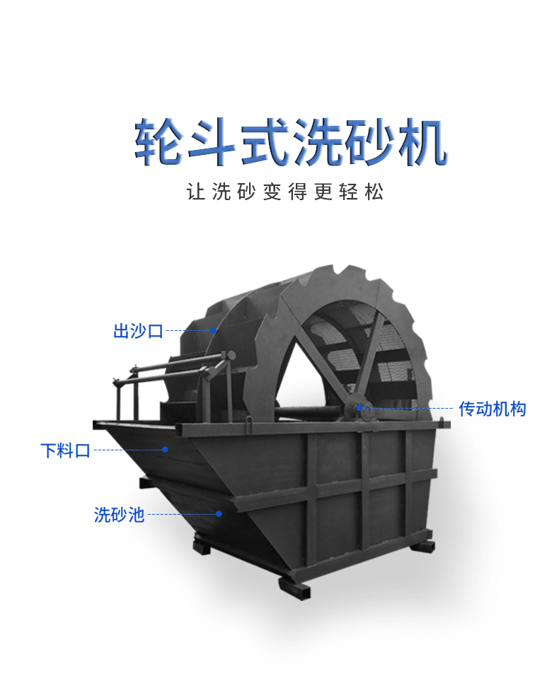 本公司生产的XSD洗沙机是一种轮斗式洗选设备,可清洗分离砂石中的石粉泥土,其新颖的密封结构,可靠的传动装置,确保了清洗脱水的效果,是配合制砂机使用的一种高效洗砂设备。