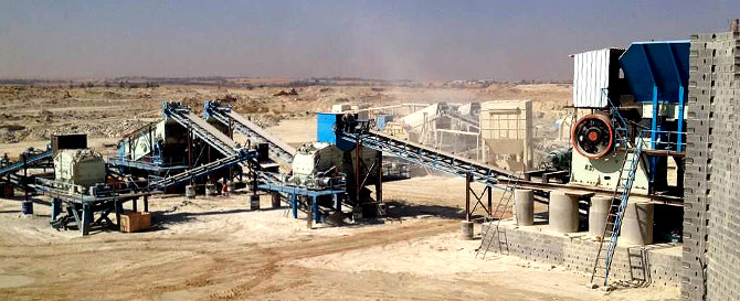 工艺流程介绍:时产500-600吨石灰石破碎设备,石料从山上爆破下来,通过自卸车将小于930mm的石料送入振动给料机,振动给料机把石料均匀的送入颚式破碎机,颚式破碎机对石料进行第一段破碎,从颚破出来的石料在160mm—275mm左右,通过振动给料机将物料送入欧版反击破进行第二段破碎,通过圆振筛对物料进行分级筛分,大于成品的物料返回反击破重新破碎,成品由皮带输送机输送至成品区。
